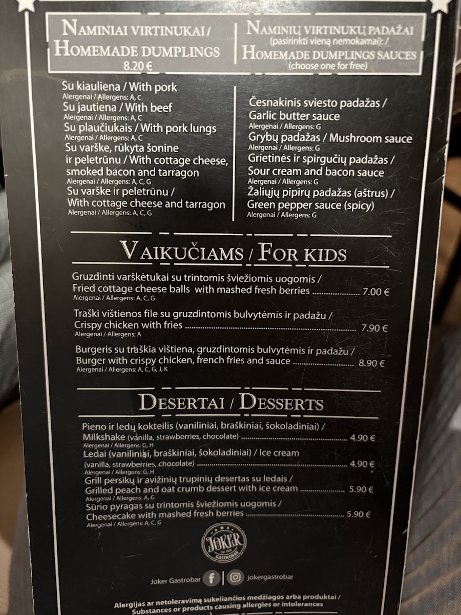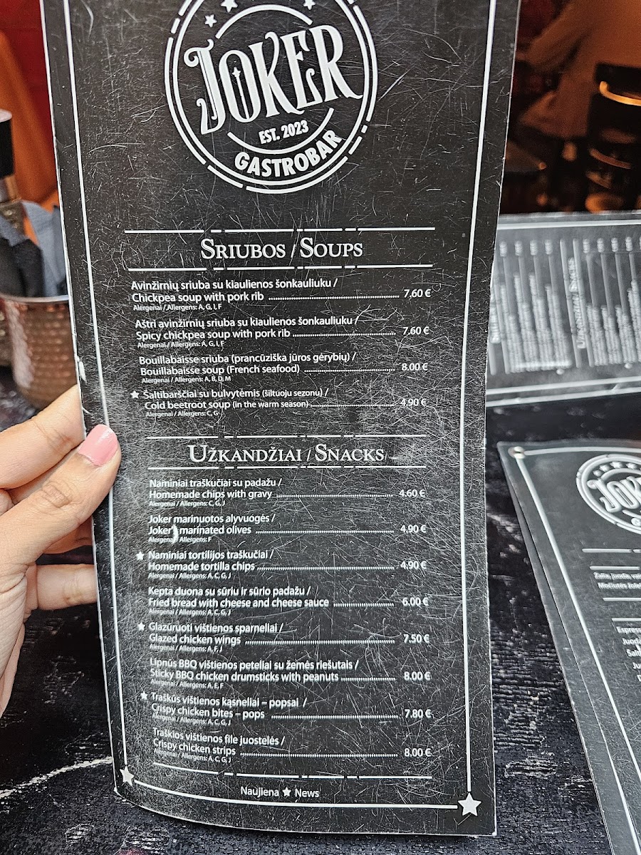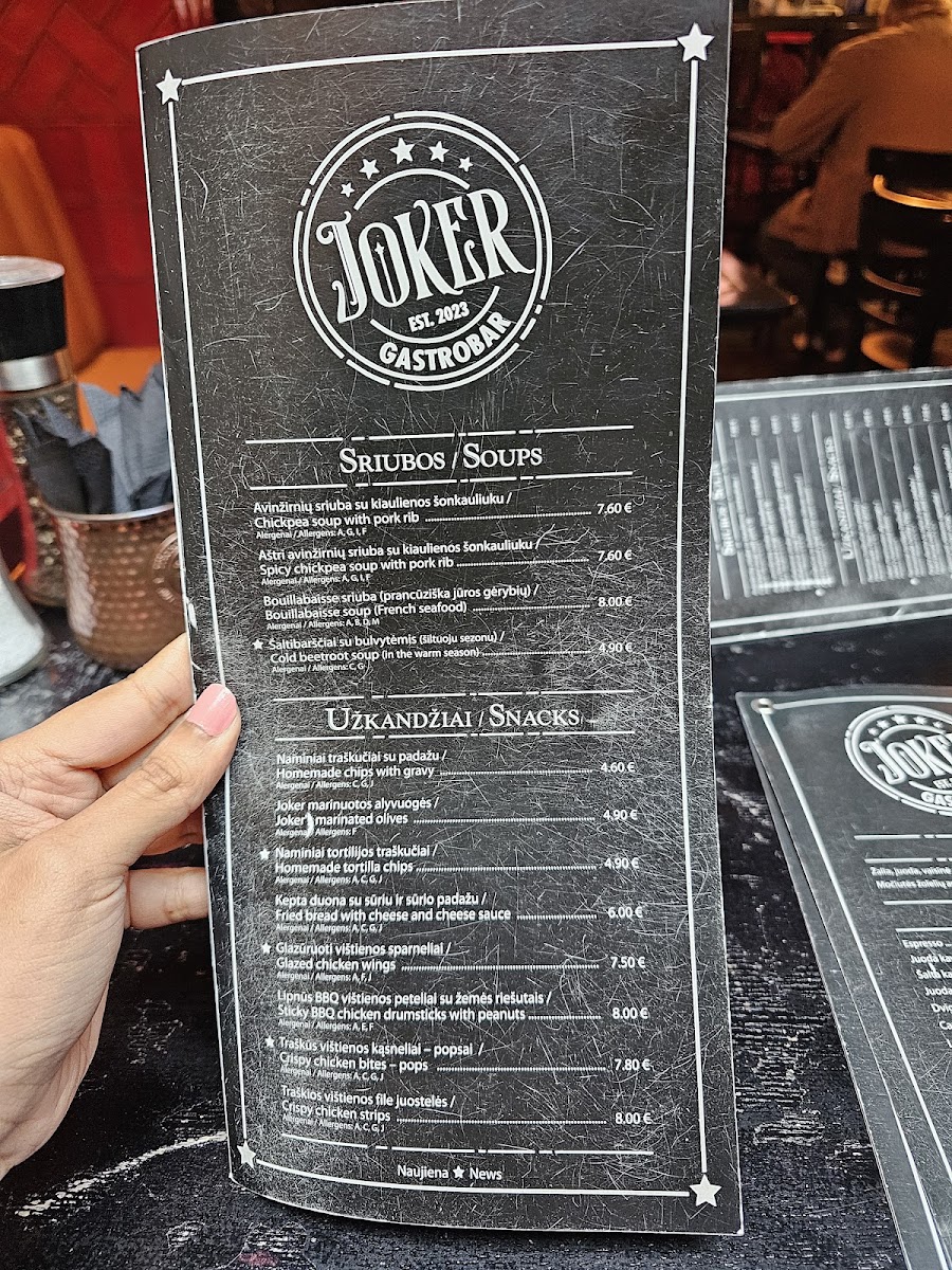 Welcome to Joker Gastrobar, a vibrant culinary destination located at Vilniaus g. 154 in Siauliai, Lithuania. This lively establishment offers an enticing blend of innovative dishes and a dynamic atmosphere. With a commitment to quality ingredients and creative presentation, each dish is a delightful experience for the palate. From savory appetizers to decadent desserts, Joker Gastrobar captivates with its diverse menu that caters to various tastes. The warm ambiance and friendly service further enhance the dining experience, making it a perfect spot for both casual outings and special occasions. Don't miss out on this gem in Siauliai!